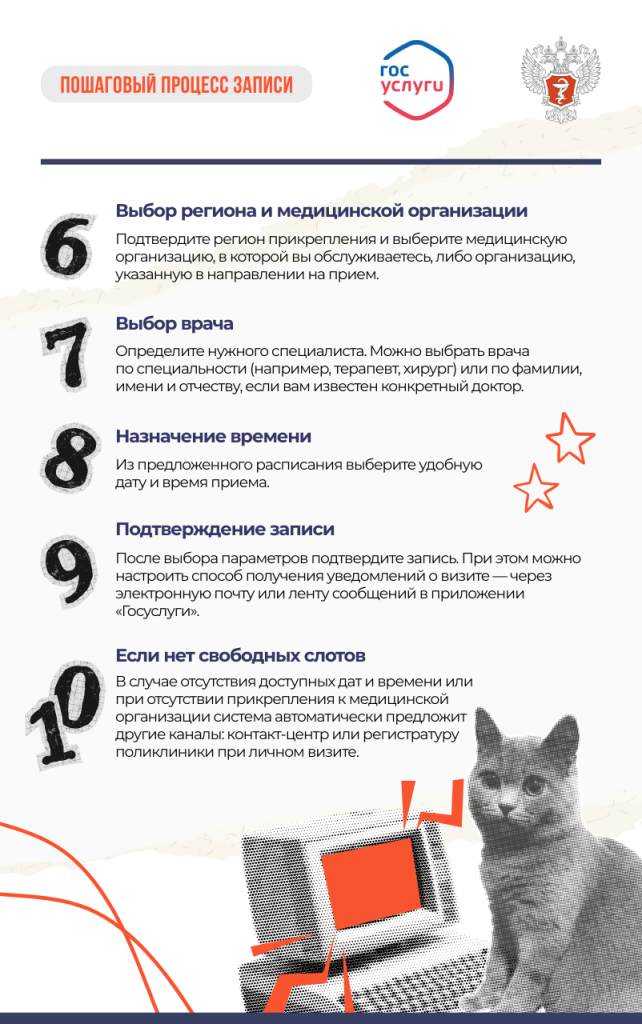 Функционал записи на прием встроен в портал «Госуслуги» и доступен для пациентов, прикрепленных к медицинской организации.